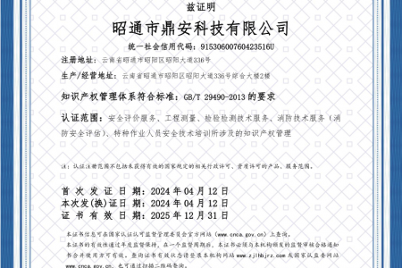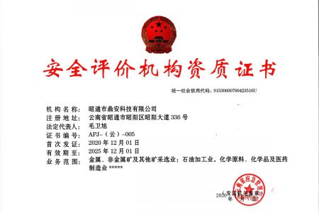 2003年11月10日,昭通市鼎安科技有限公司成立,初始主要從事第三方安全工程技術(shù)服務(wù),經(jīng)多年運(yùn)營(yíng),發(fā)展為多專業(yè)綜合科技平臺(tái),為社會(huì)提供多種專業(yè)技術(shù)服務(wù)工作。 現(xiàn)公司注冊(cè)資金為1200萬(wàn)元,公司法定代表人:毛衛(wèi)旭。公司主要業(yè)務(wù):安全評(píng)價(jià)、安全標(biāo)準(zhǔn)化評(píng)審、安全工程技術(shù)服務(wù);環(huán)境監(jiān)測(cè)、職業(yè)衛(wèi)生檢測(cè)、檢驗(yàn);法律訴訟及非訴訟服務(wù);司法鑒定、固定資產(chǎn)投資項(xiàng)目節(jié)能服務(wù);工程咨詢;工程測(cè)量測(cè)繪;安全教育培訓(xùn)等。是安全生產(chǎn)服務(wù)、安全教育培訓(xùn)機(jī)構(gòu),也是環(huán)境監(jiān)測(cè)和職業(yè)衛(wèi)生服務(wù)機(jī)構(gòu),同時(shí)也是綜合的檢測(cè)檢驗(yàn)、綜合科技平臺(tái)服務(wù)機(jī)構(gòu)。多年來為公、檢、法、司、軍、警、海關(guān)、仲裁、安監(jiān)、工礦商貿(mào)企業(yè)、社會(huì)團(tuán)體及個(gè)人提供多專業(yè)技術(shù)服務(wù)。